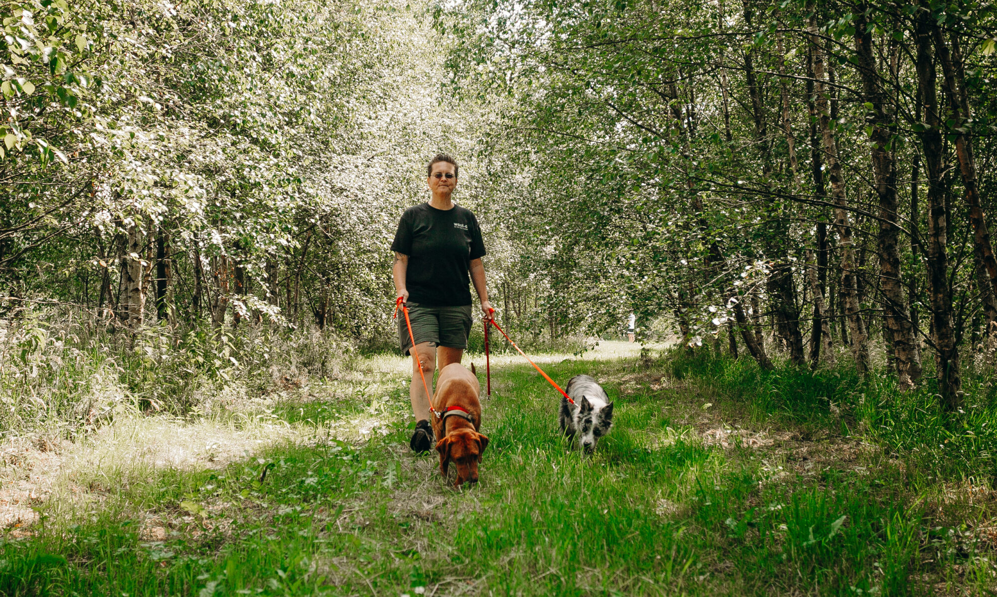 Woof-o’s walking service is customized to your dog’s individual needs. As an SPPD-accredited dog walking service with the Dierenwelzijn quality seal, we place great emphasis on safety and well-being. Our harmonious group walks allow your dog to move naturally and peacefully interact with other dogs – always in a calm and controlled atmosphere. If things get too wild, I intervene quickly and effectively to ensure the safety of all dogs.
